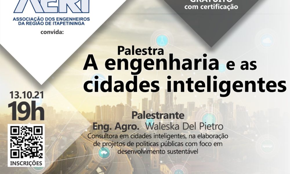 A AERI apresenta mais uma palestra e desta vez o tema Ç A ENGENHARIA E AS CIDADES INTELIGENTES.