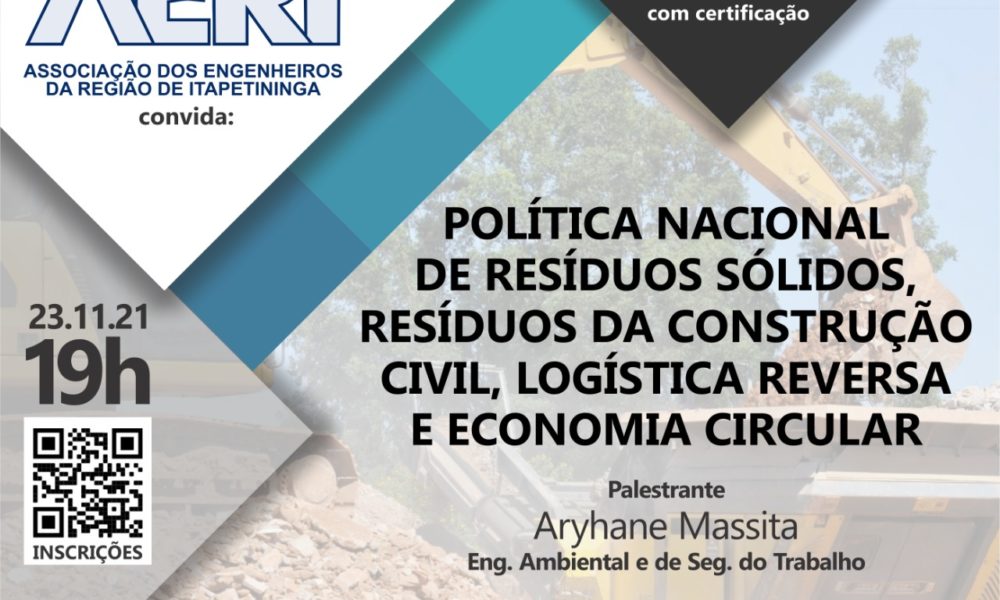 A AERI apresenta mais uma palestra e desta vez o tema Ă© POLĂTICA NACIONAL DE RESĂDUOS SĂLIDOS, RESĂDUOS DA CONSTRUĂĂO CIVIL, LOGĂSTICA REVERSA E ECONOMIA CIRCULAR.